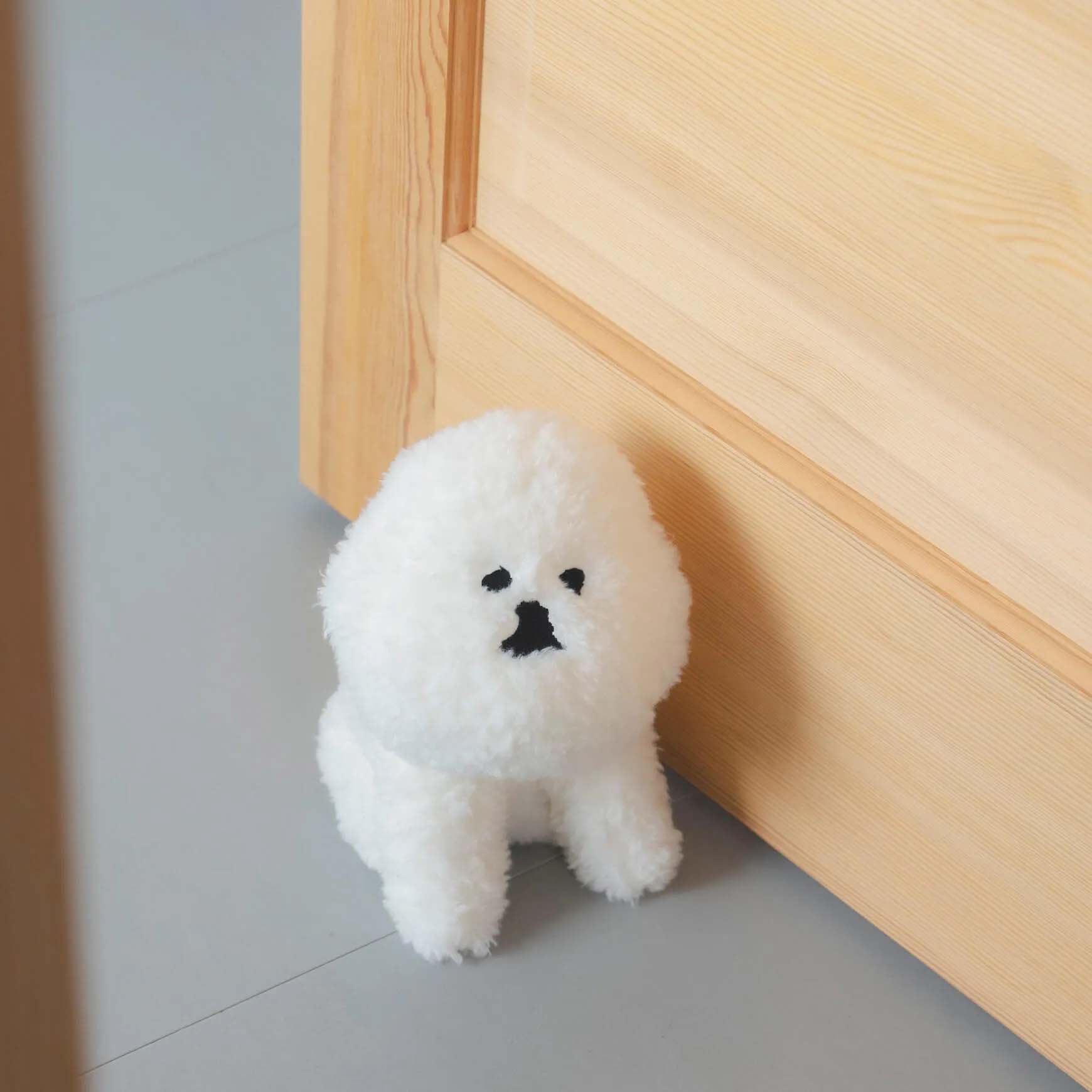 人気の勢い、衰えること知らず・・・10月もたくさんのお家のドアを押さえに、旅立っていったドアストッパー。 重さ約1kg 、どんなドアも、一生懸命に押さえます。 「ドアを押さえていないときは、ぬいぐるみとして、みんながかわいがってくれているんだよ」(・・・ MAMBO 談?)