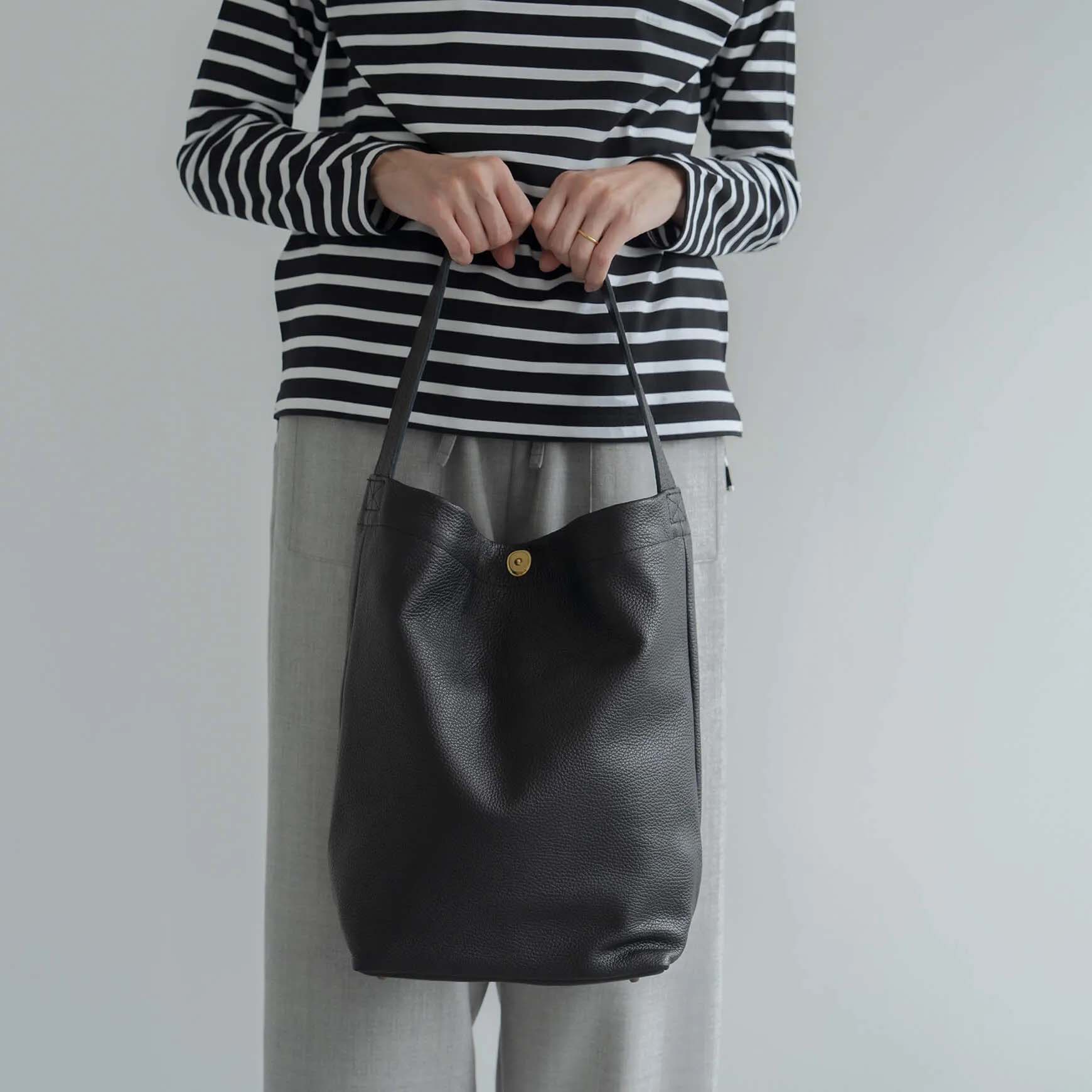 上質な牛革を使った、シックでありながら使いやすさも兼ね備えたショルダーバッグ。 深さがあり、A4サイズの書類やお弁当も入る大きさで、お洒落をしたお出かけはもちろん、仕事の際にも大活躍。 持ち手にはしっかりとした幅があるので、荷物をたくさん入れても肩からラクに掛けられます◎