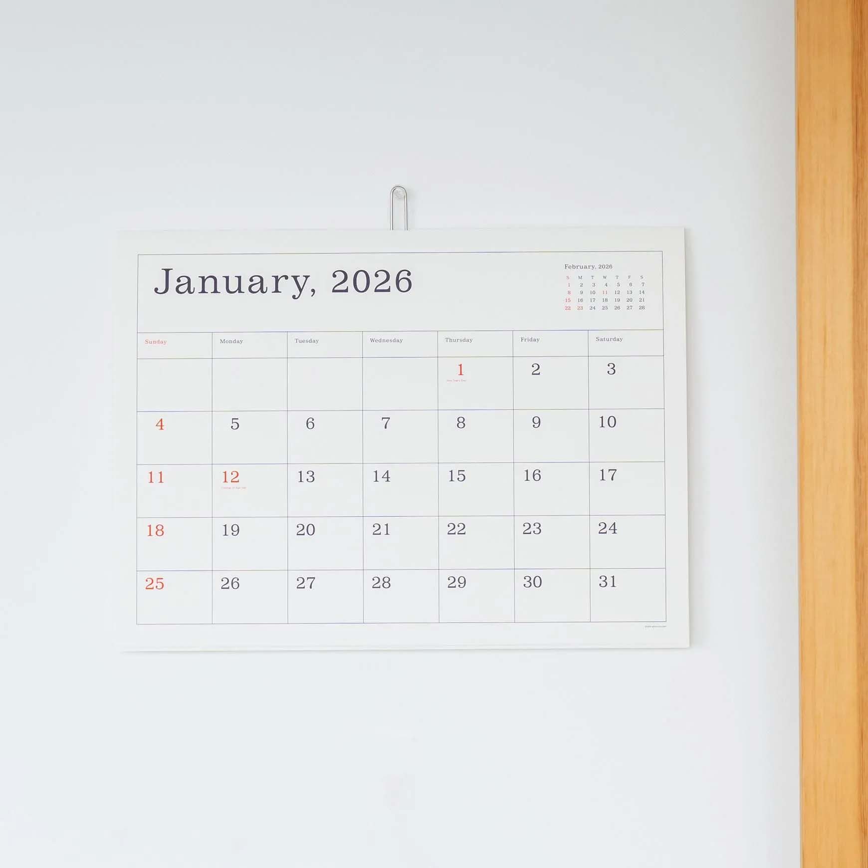 “カレンダーといえば葛西薫さん”。 一度使ったら来年も・・・と繰り返してしまうのがこちら。 2026年版、引き続きの人も、初めて挑戦する人も、たくさんいらっしゃいました。 とにかく、そのシンプルさが魅力。 罫線と日付と祝日の英語表記のみで表された、これぞシンプルの極みです。 2026年もよろしくお願いします。