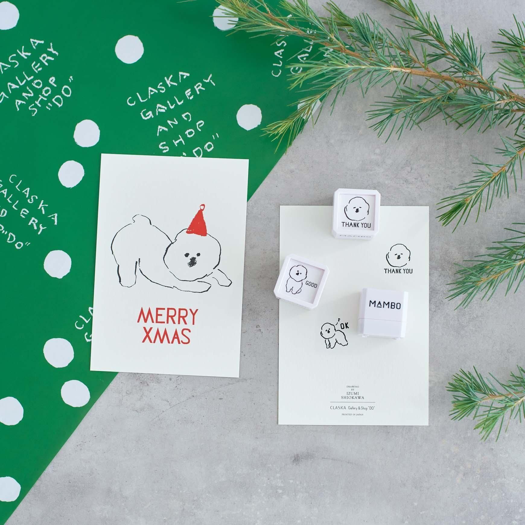イラストレーター 塩川いづみさんの描いたビション・フリーゼという犬がモチーフ。人気の MAMBO の XMAS カードを作りました。