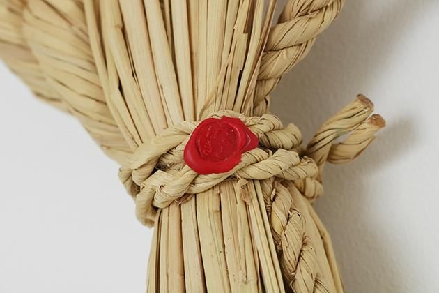 しめ飾りの比率や大きさは、収穫された藁によってその年ごとに異なります。また、撮影に使用したしめ飾りは過去に制作されたもので、実際にお届けするしめ飾りよりも青みが抜けています。