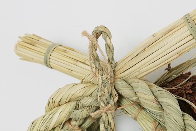 しめ飾りの比率や大きさは、収穫された藁によってその年ごとに異なります。また、撮影に使用したしめ飾りは過去に制作されたもので、実際にお届けするしめ飾りよりも青みが抜けています。