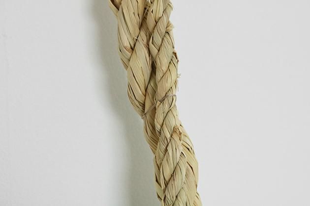 一本に伸ばすとしめ縄のかたちになる俵のしめ飾り。しめ縄は藁の先ほど毛羽が立ちやすくなりますが、ことほき のしめ縄には丁寧な手仕事が感じられます。細部へのこだわりが、ことほき のしめ飾りの洗練された雰囲気を生み出しています。