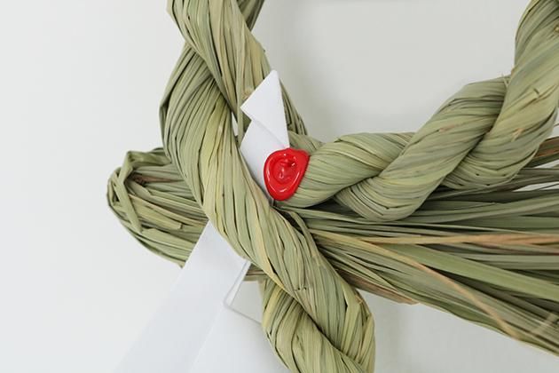 しめ飾りには、「ことほき」の印が捺された帯が付きます。外してから取り付けてください。
