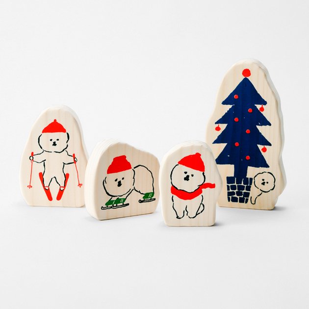 イラストレーター 塩川いづみさんの描いた、ビション・フリーゼがモチーフ。人気の MAMBO の、冬にぴったりな木製オブジェを作りました。