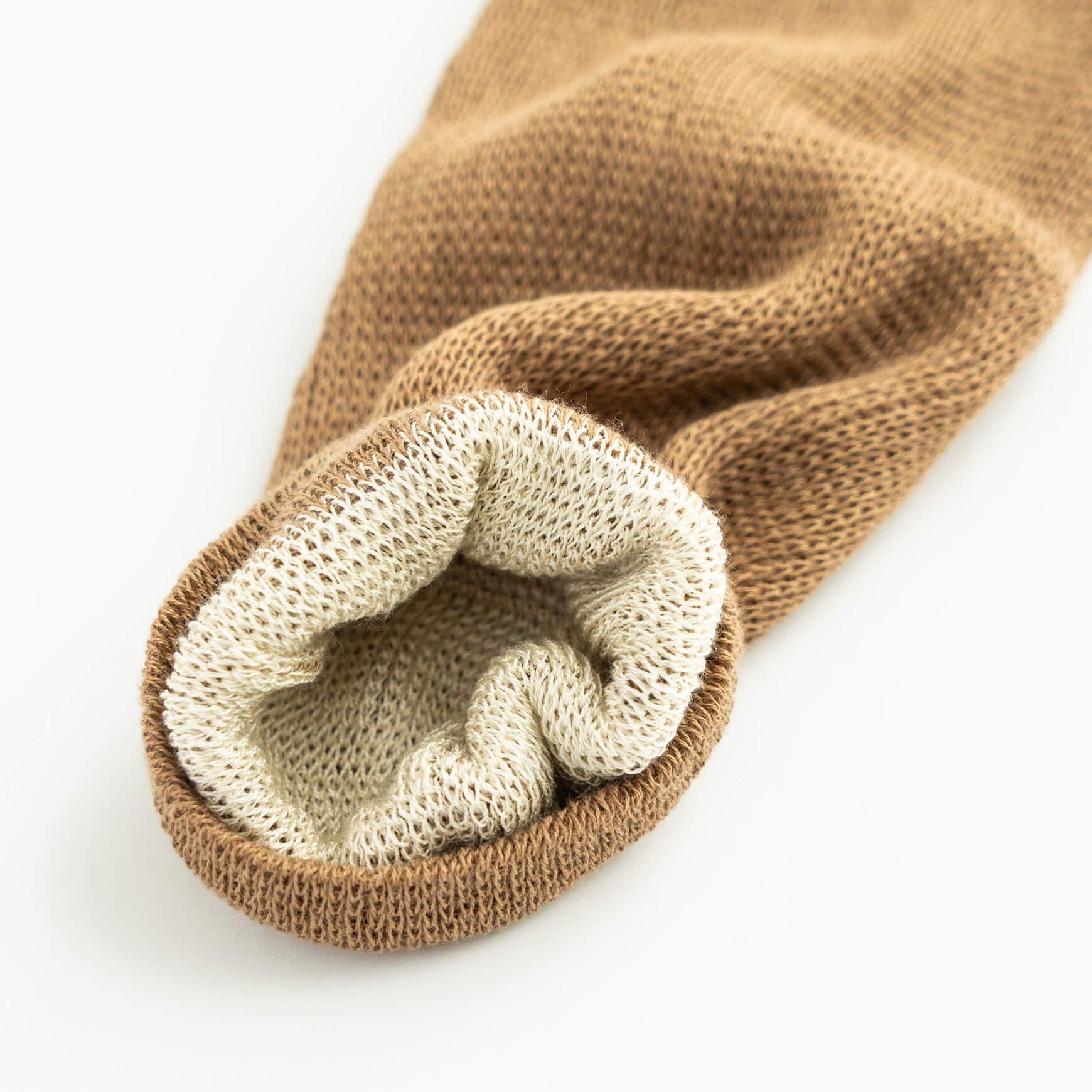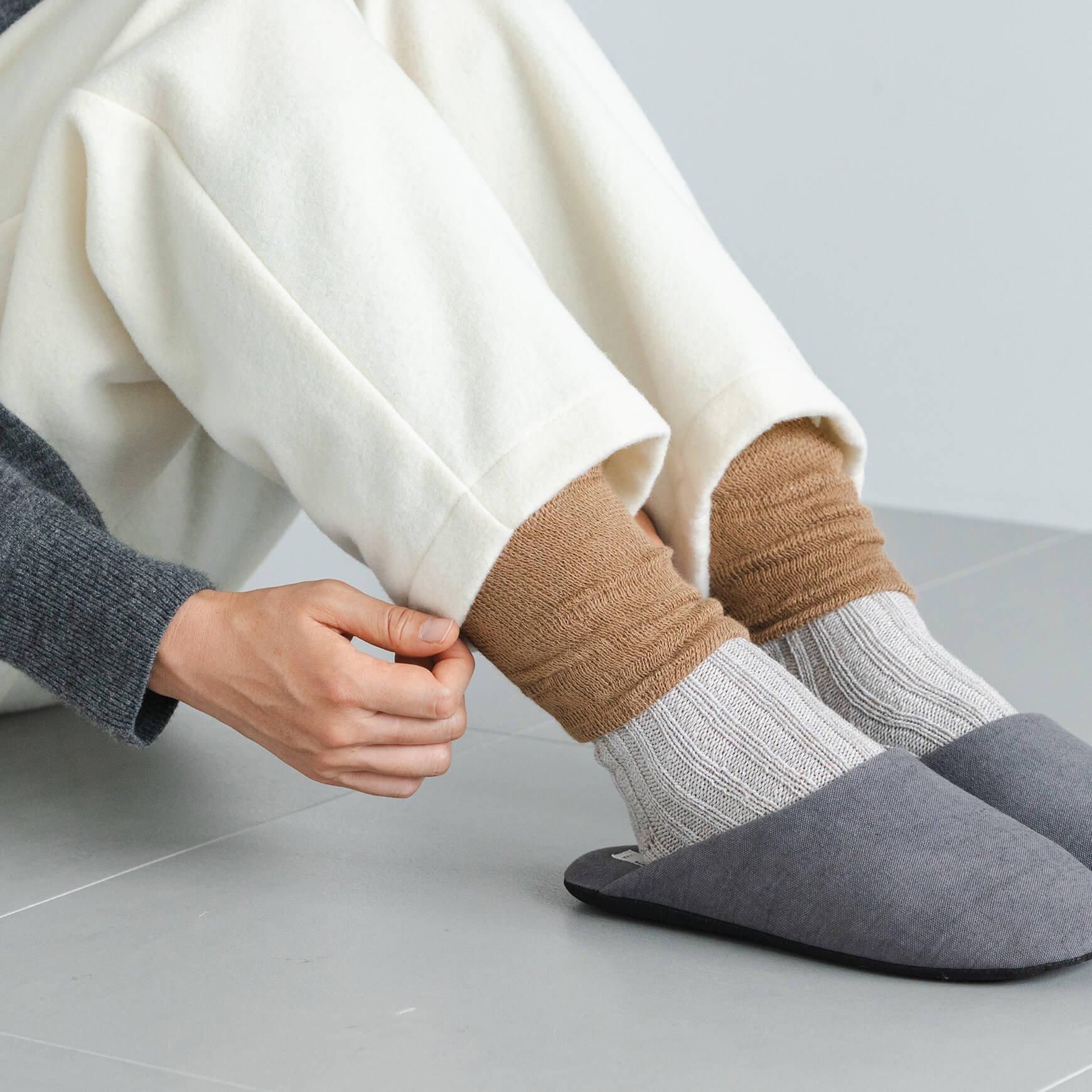 「わたし自身のものさしを見つける」をテーマに、使い続けることで生活を豊かにしてくれる物や、身体と心を整えるアイテムを展開している「くらすこと」の、内側シルクのコットンレッグウォーマー。