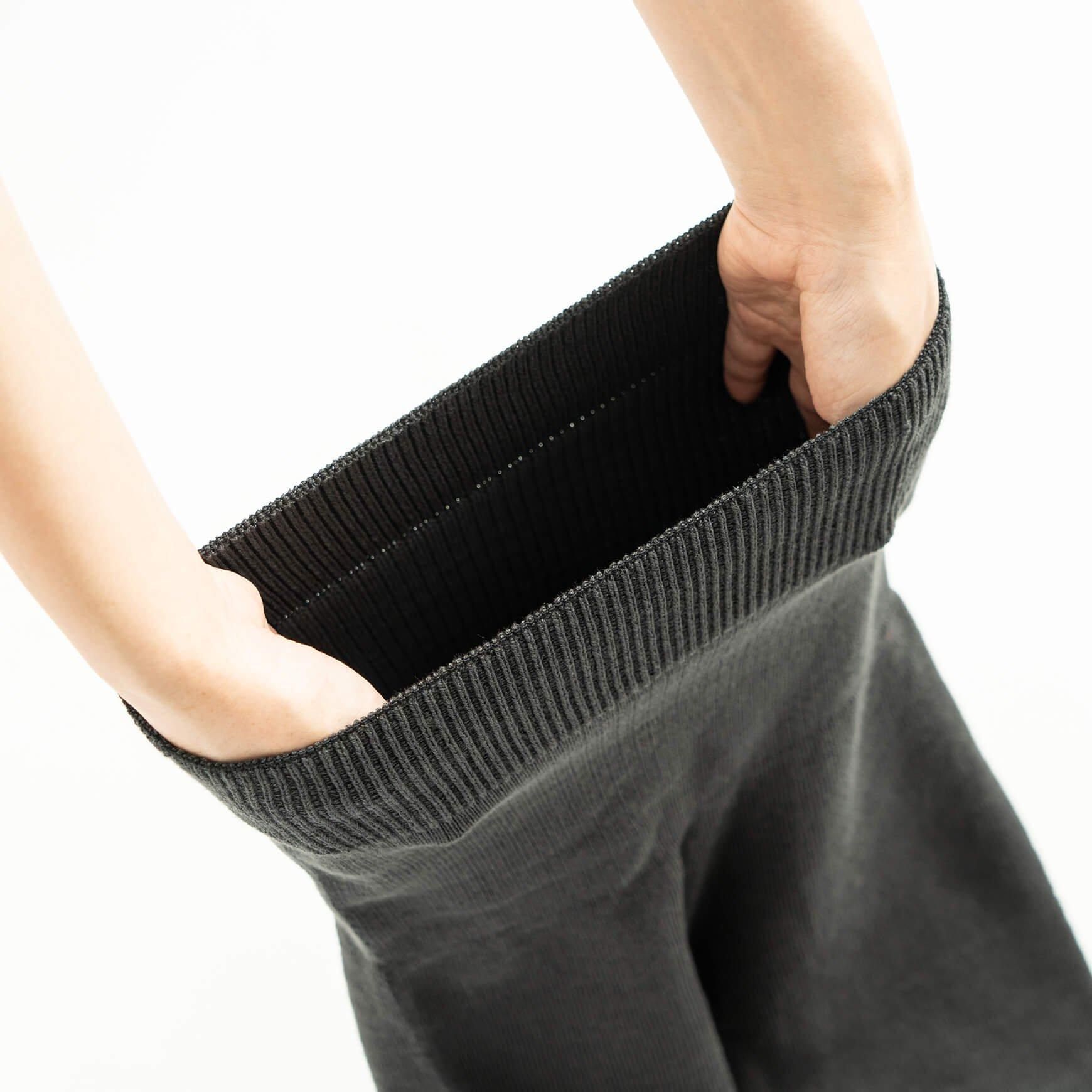 ゆっくりと編み立てられてたレギンスは、ごわつきや締めつけがなく一日中履いても心地よく快適です。