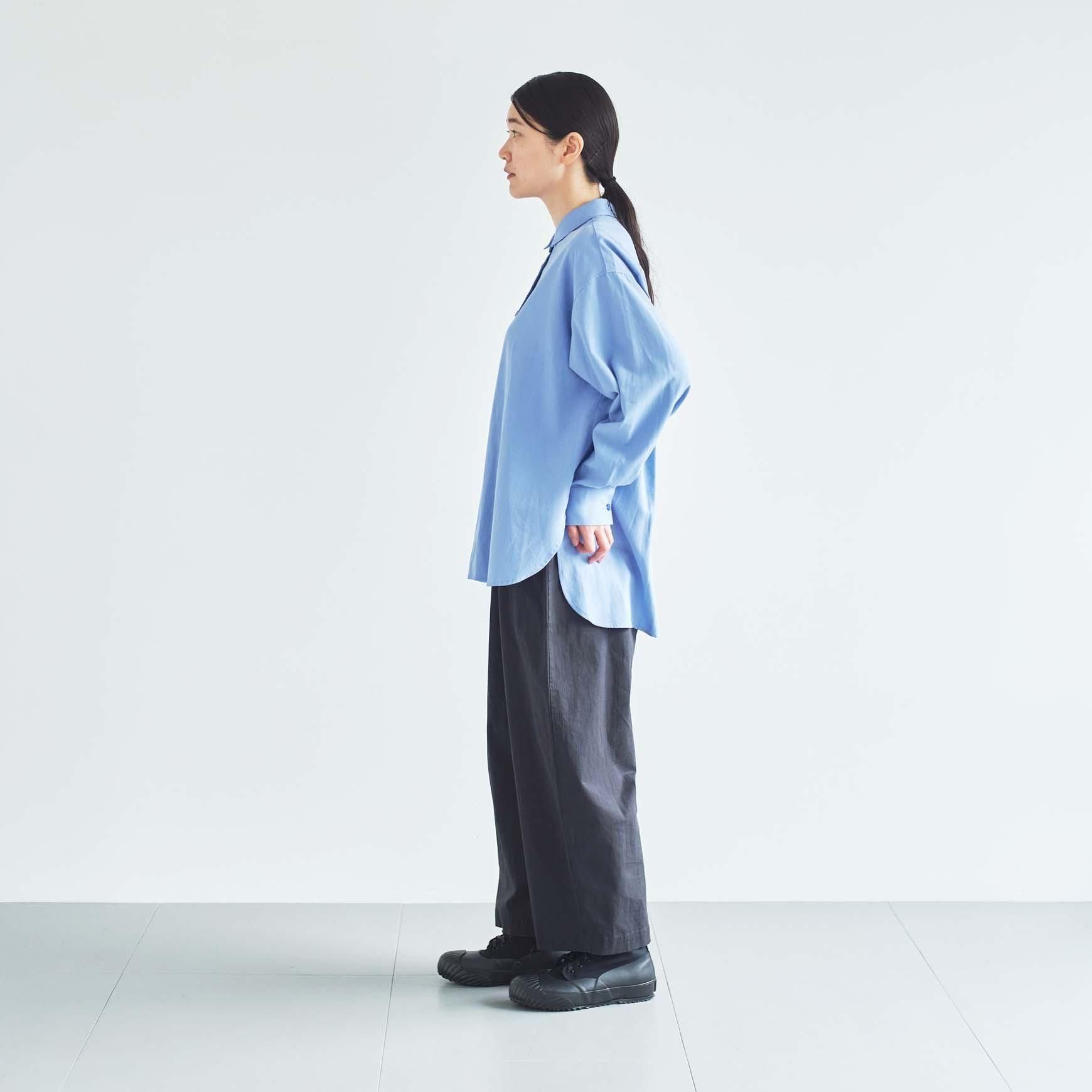 見た目はコットンのようでありながらも、落ち感ととろみが特徴のテンセルが混紡された生地を使用。