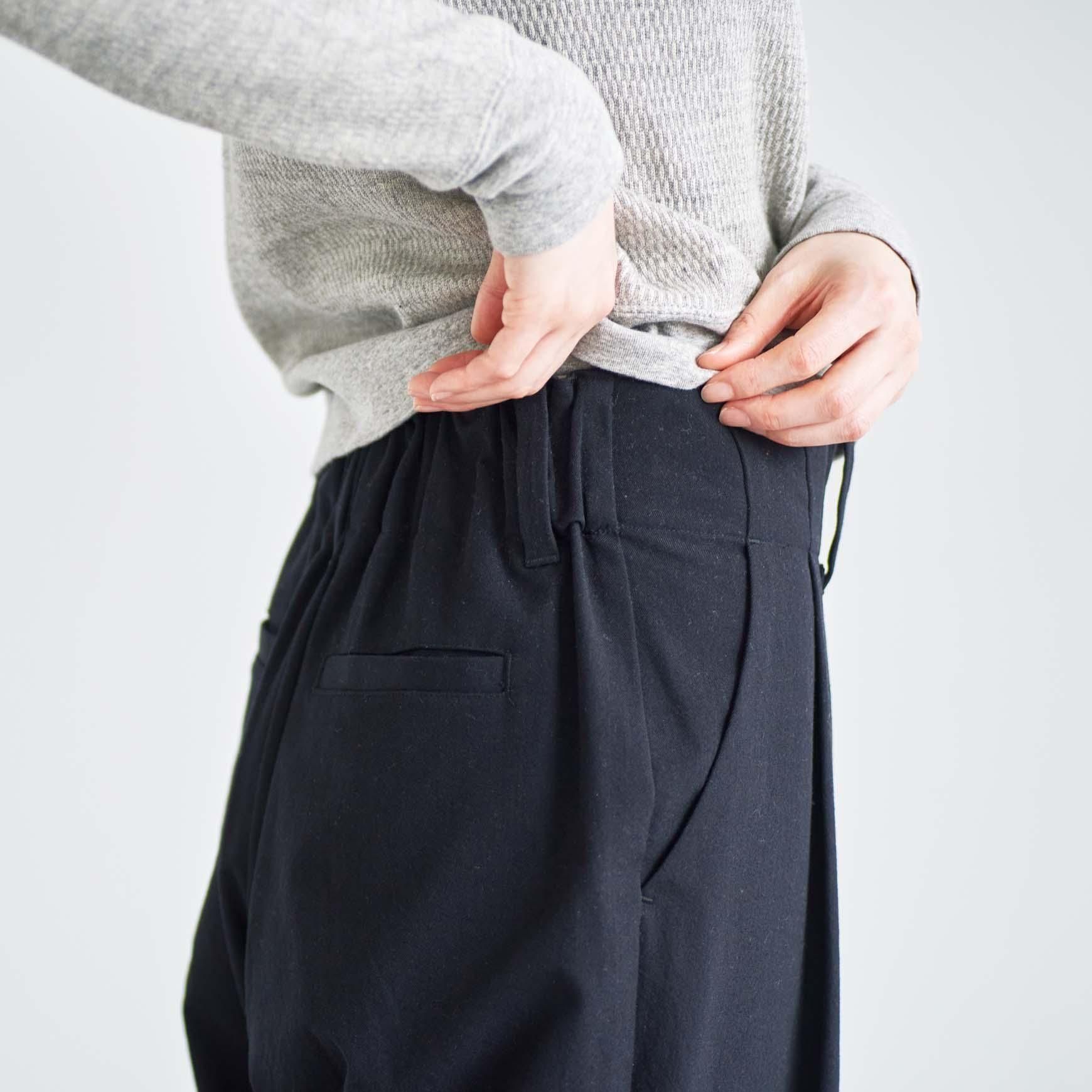 バックウエストには、調整力のある太めの平ゴムを通して、履いた時の安心感をプラス。