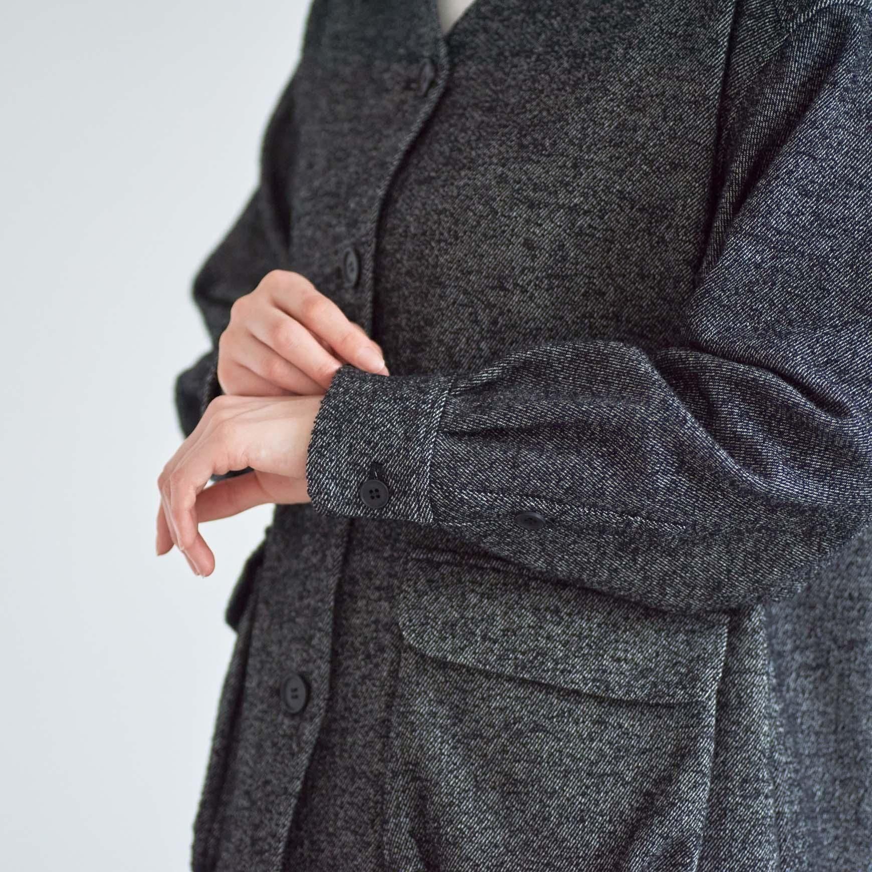 秋冬らしいツイードの生地で、カーディガンやシャツ感覚で気軽に羽織れるVネックのジャケットを作りました。