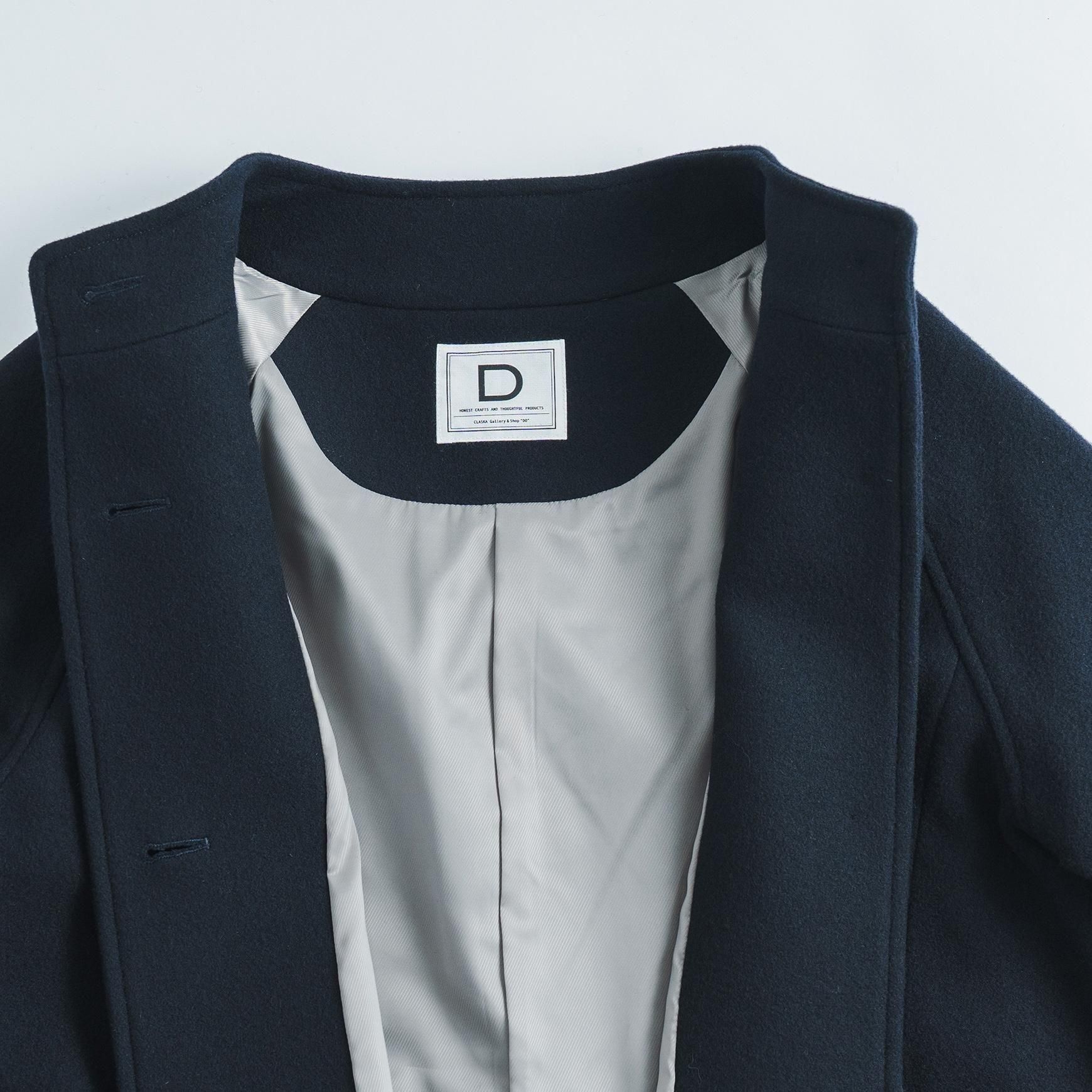 D オリジナルの軽く羽織れるショート丈のコート。