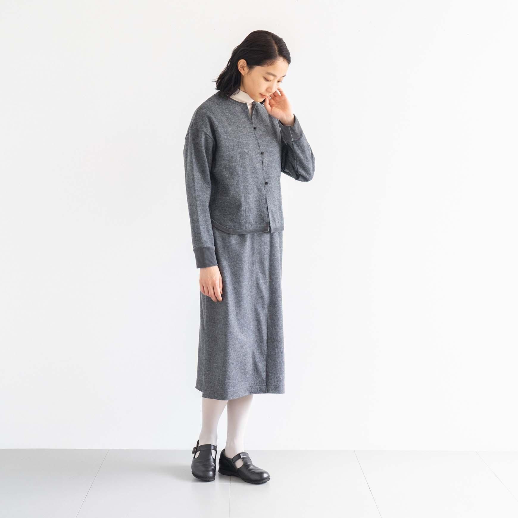 (モデル身長161cm 中に着たトップス:コットンリブニットプルオーバー / ネイビー ボトムス:ウールフラノタックスカート / グレー)