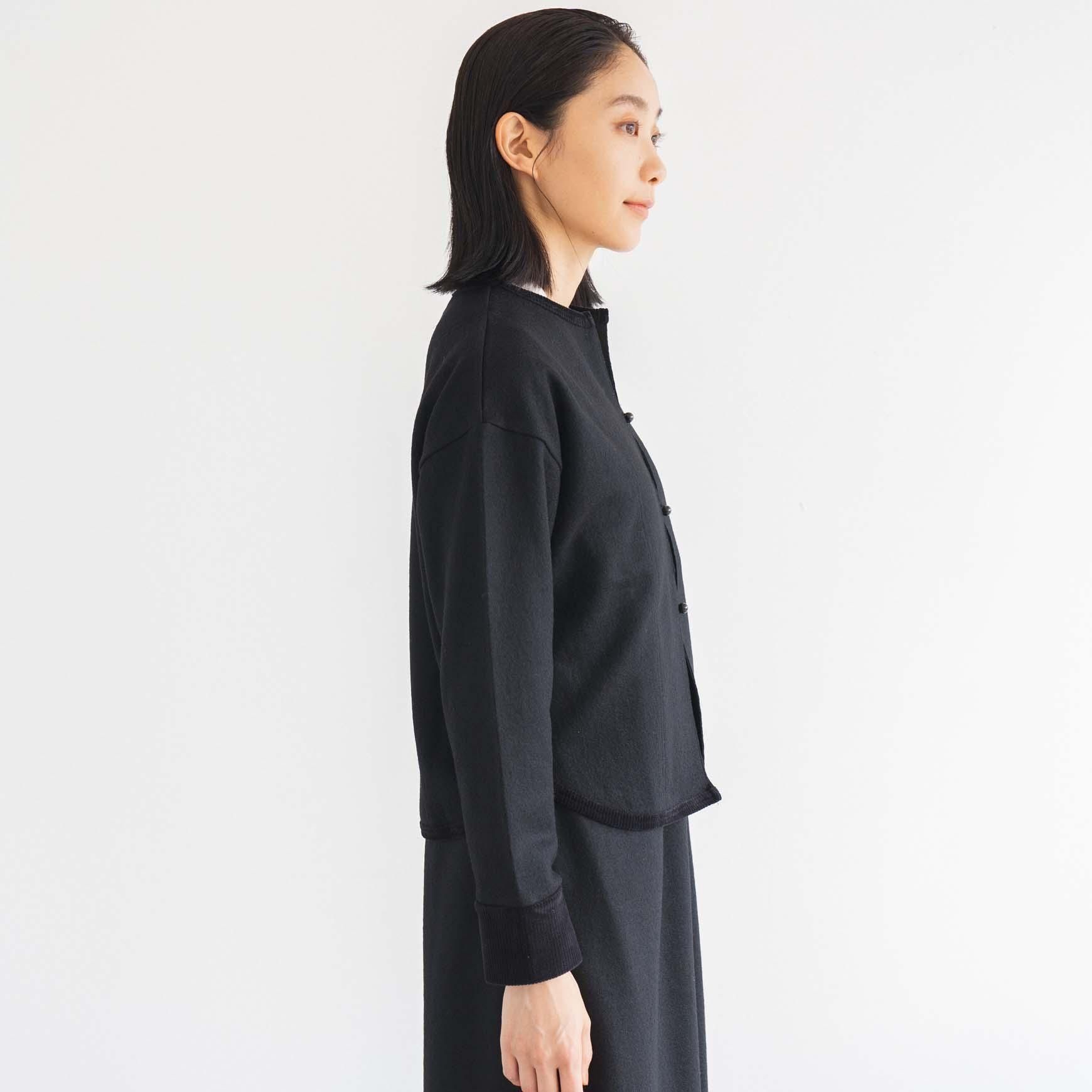 カーディガンよりもきちんと感があってジャケットほどかしこまりすぎずに羽織れる、ジャージー素材のジャケット。
