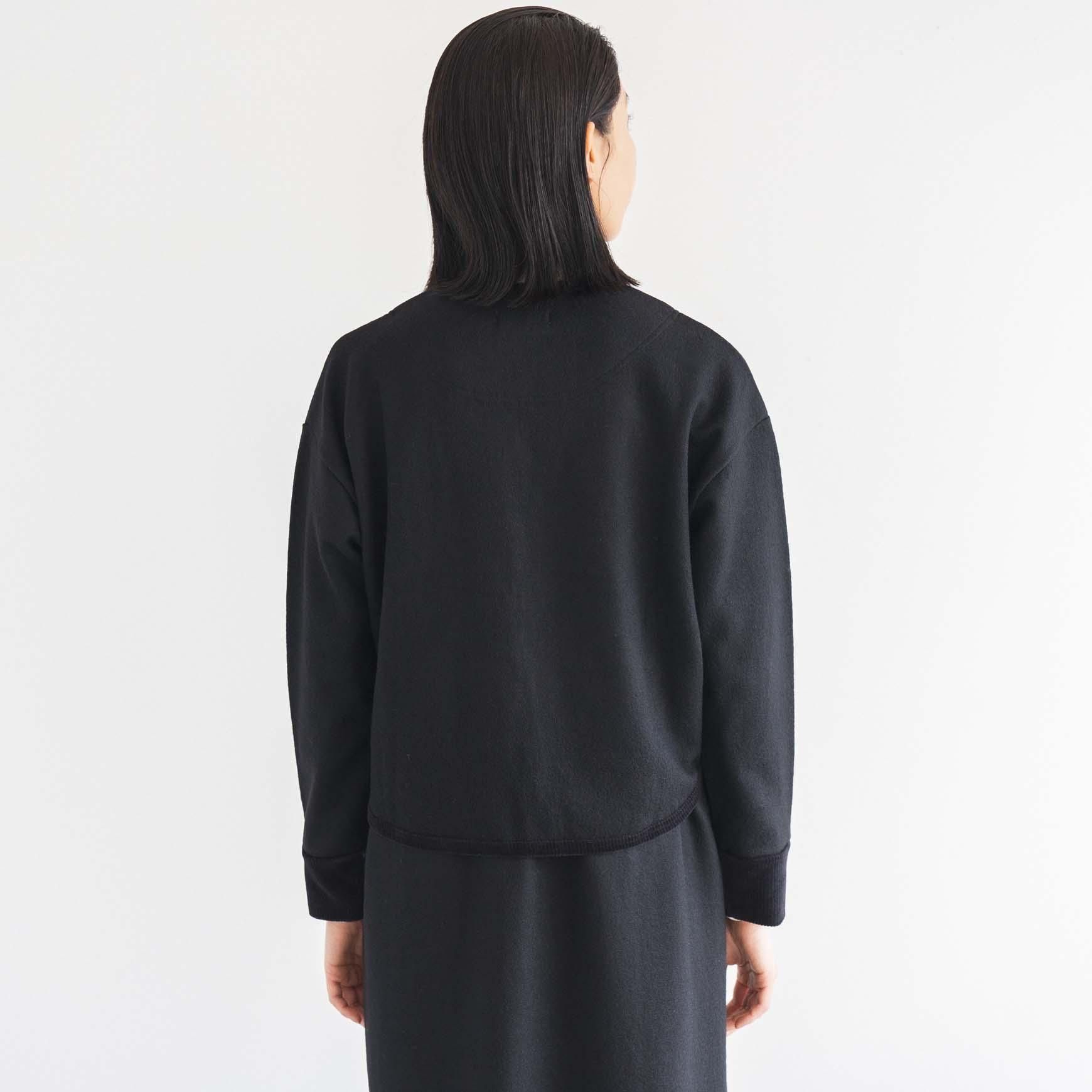 (中に着たトップス:コットンリブニットプルオーバー / ホワイト ボトムス:ウールフラノタックスカート / ブラック)