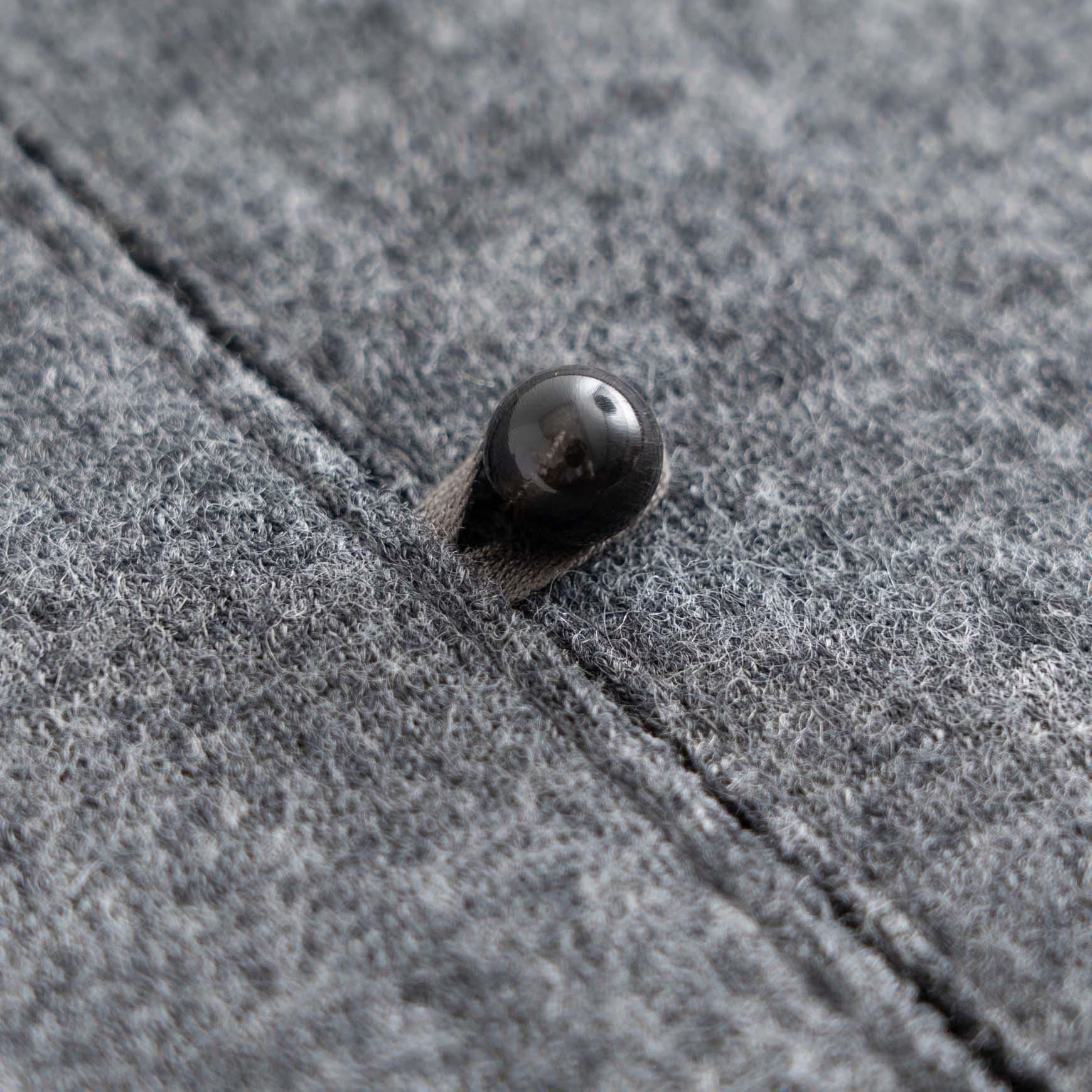 コロンとした丸いボタンがチャーミング。 小ぶりで控えめなデザインが、大人っぽい印象のジャケットにマッチしています。