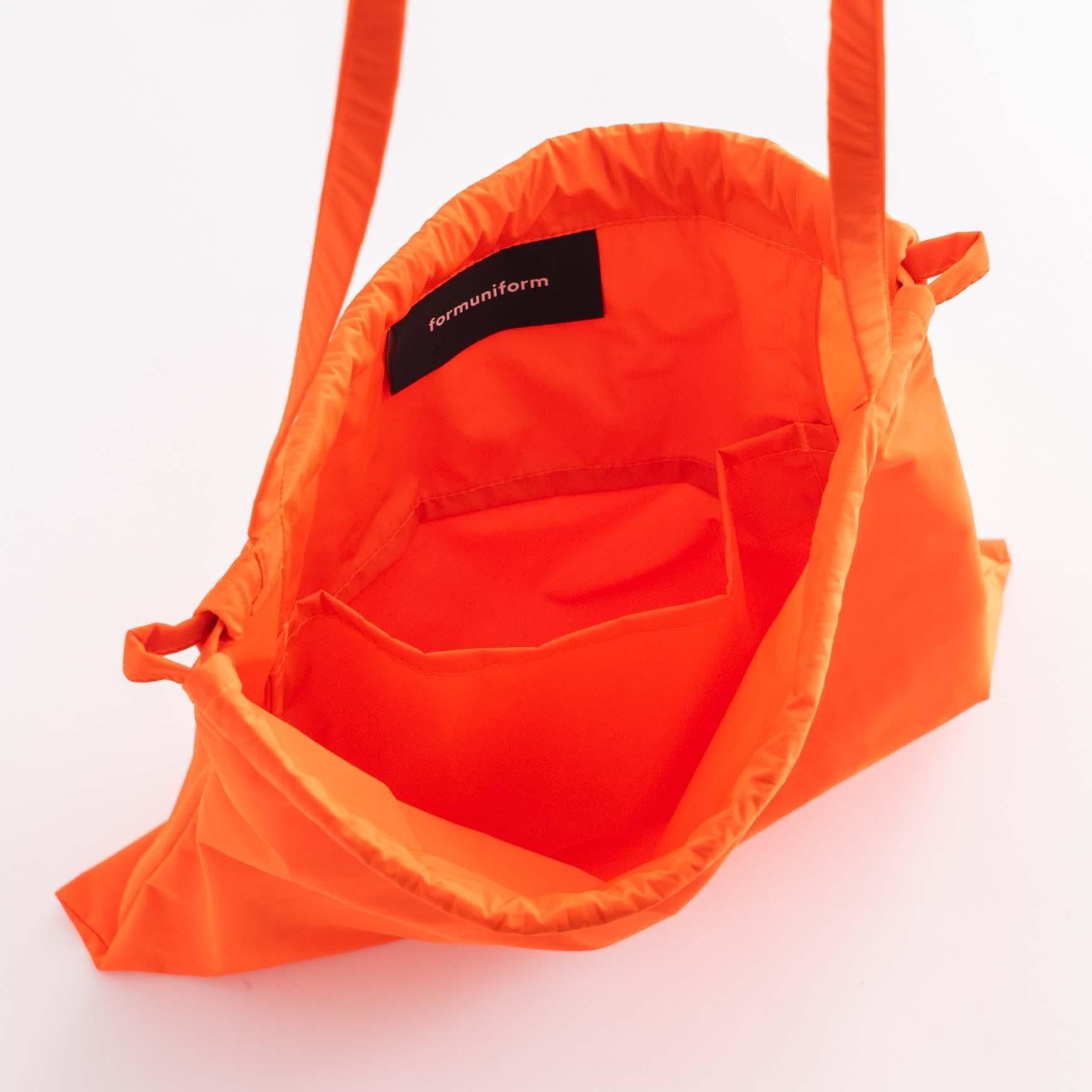 両側のドローコードで口を絞って、巾着タイプのショルダーバッグとしてお使いいただくことも可能です。