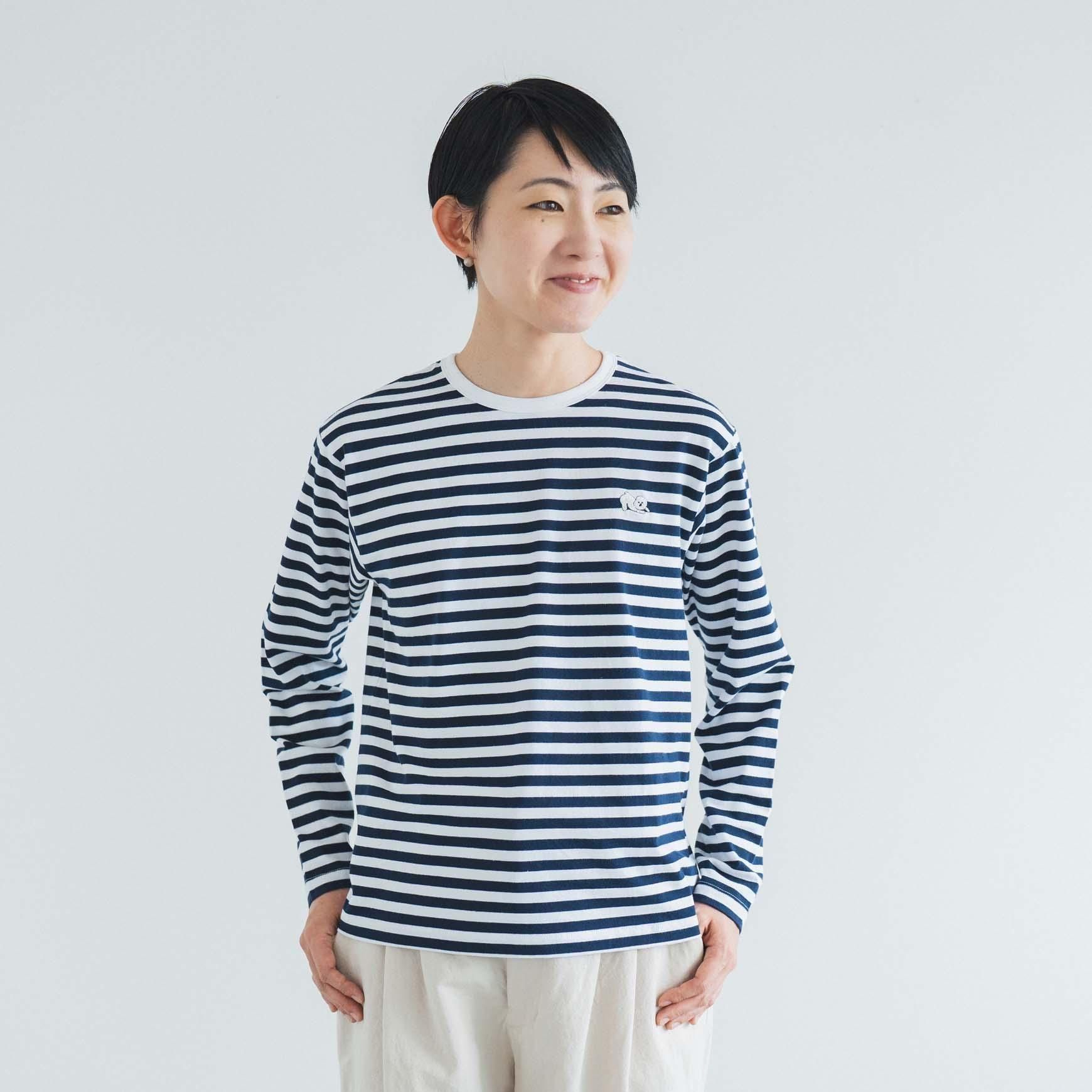 イラストレーター 塩川いづみさんが描く人気の MAMBO のワンポイントをあしらった、ボーダーの長袖Tシャツを作りました。