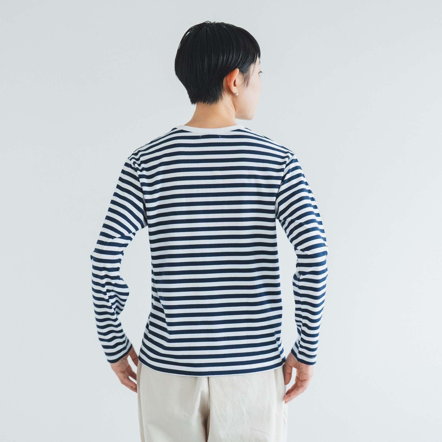 流行に左右されない、シンプルなクルーネックのボーダー長袖Tシャツ。