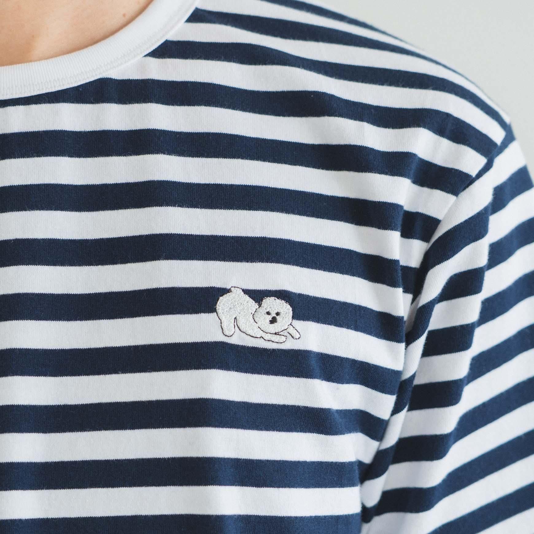 配色は、ホワイト×ダークネイビーの定番カラー。 ボーダーのピッチは均等です。