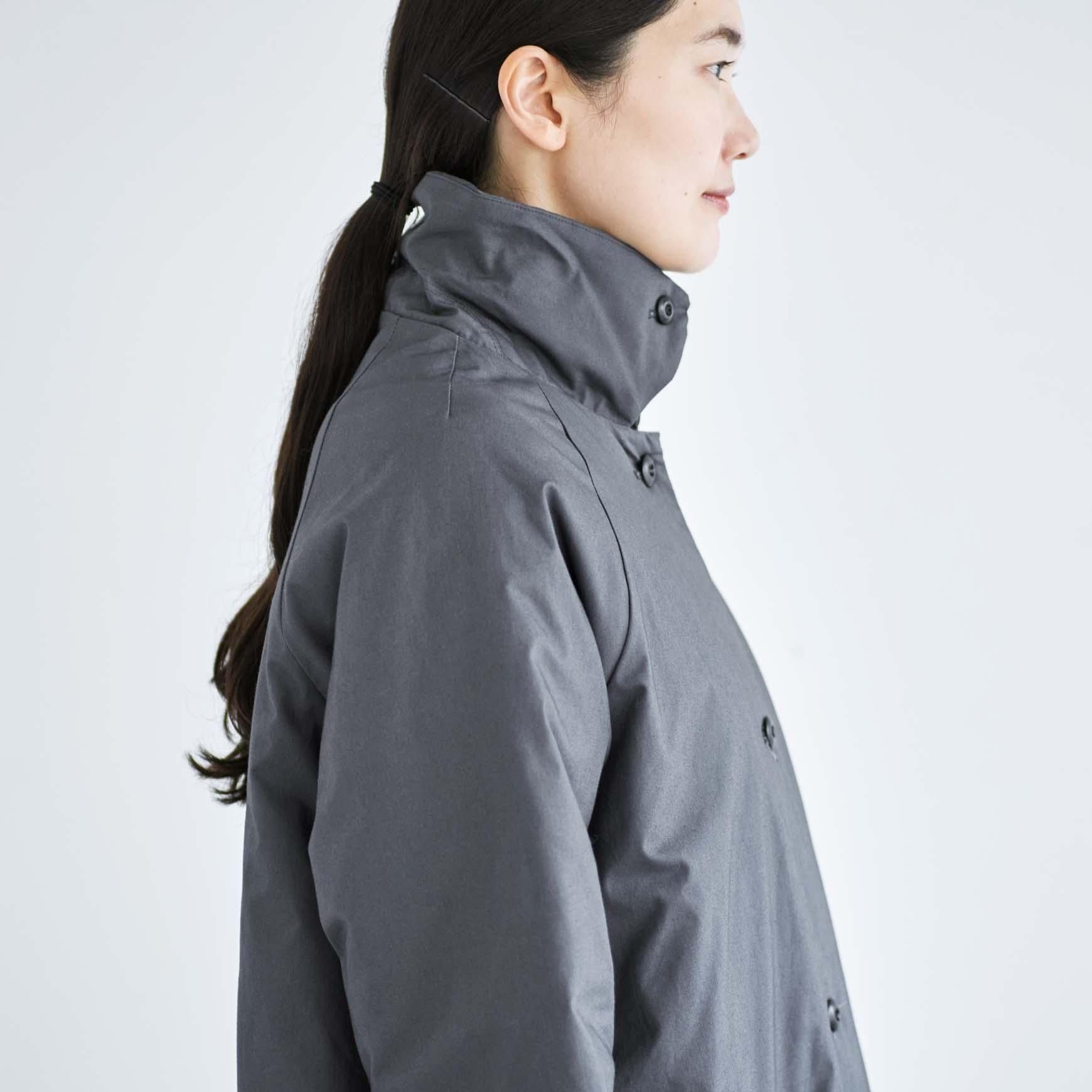 襟はしっかりと首元をカバーできるよう、スタンドカラーにもなる2WAY仕様です。