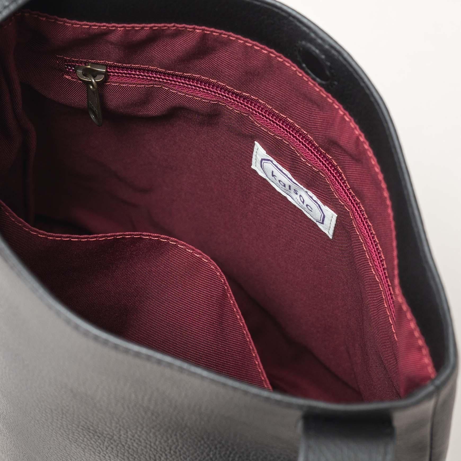 内側は落ち着いたボルドーカラー。 kalsac の ロゴが小さなポイントに。