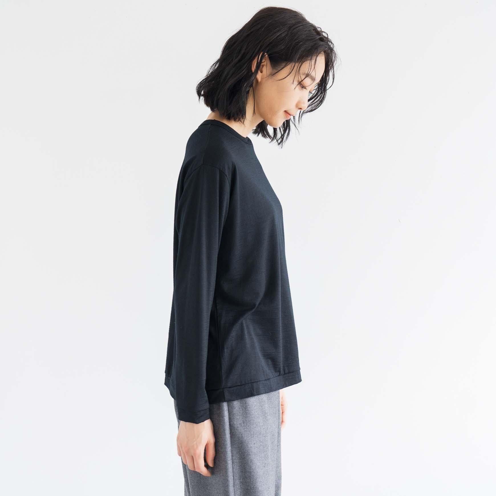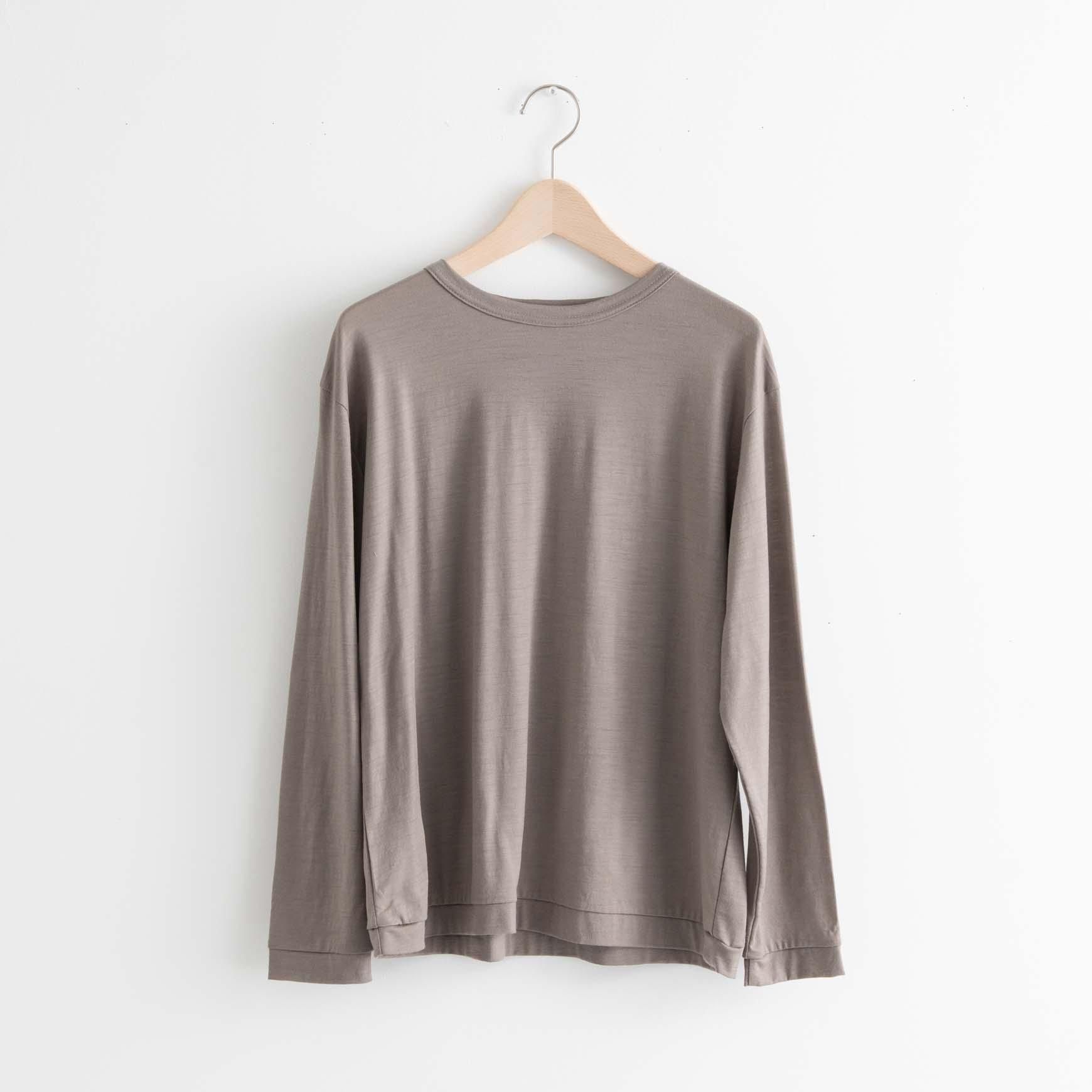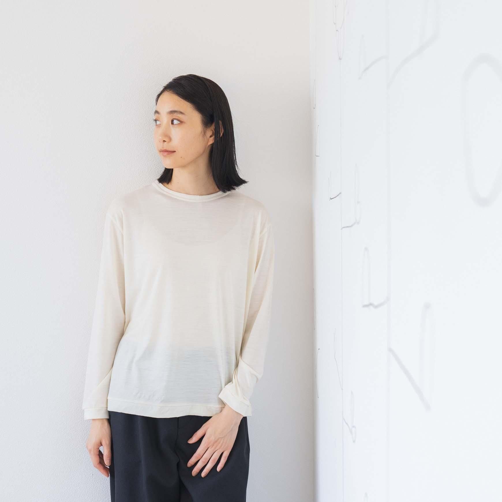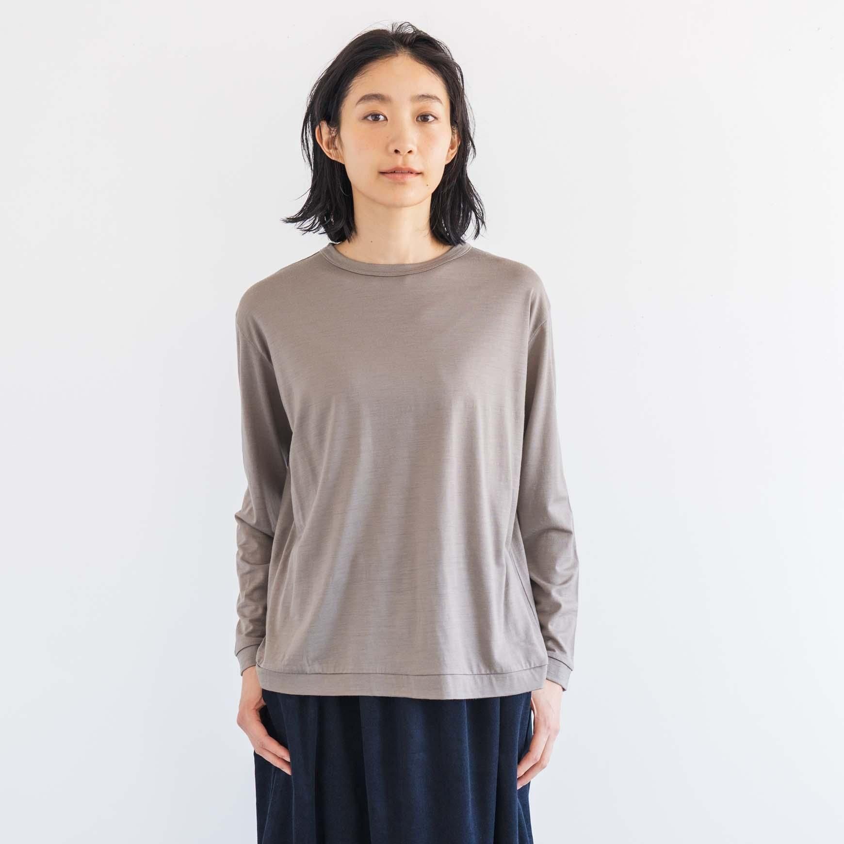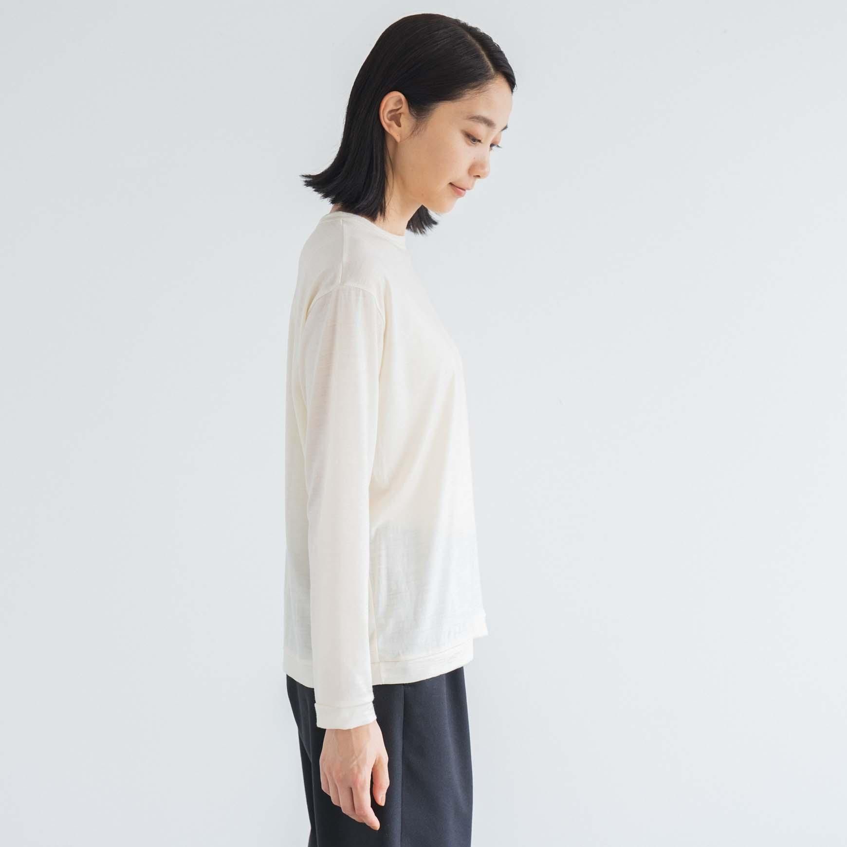 ウールなのに素肌に心地よく、1枚ではもちろんインナー使いにも、真夏をのぞいたほとんどの季節に使いやすいカットソーです。
