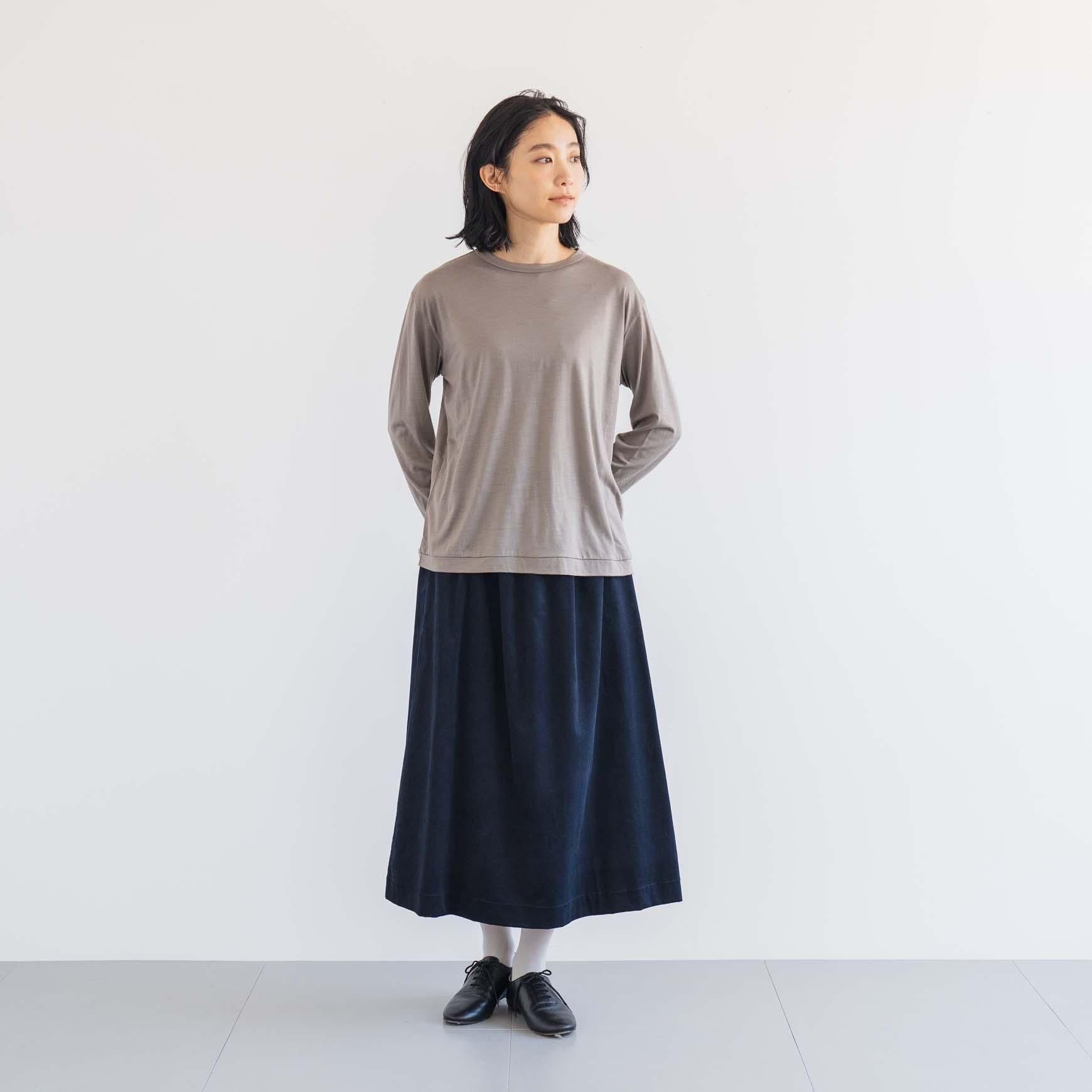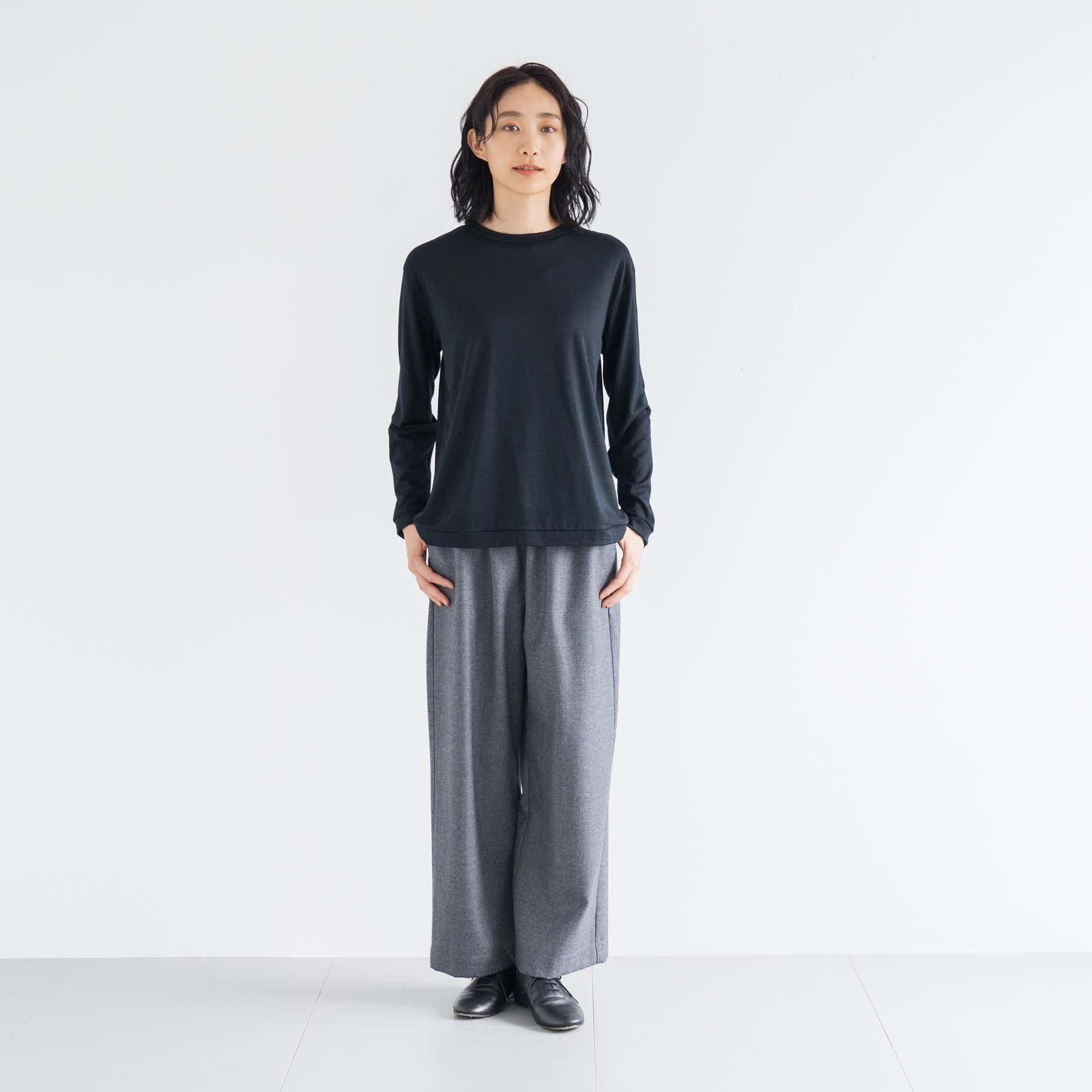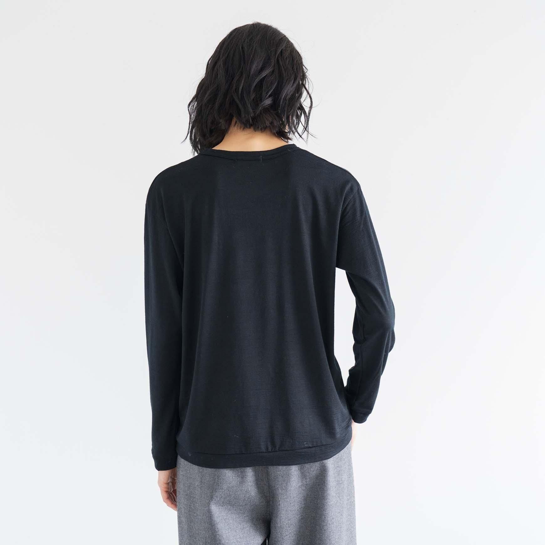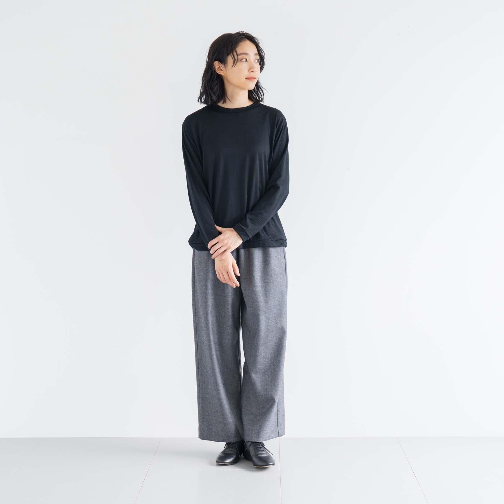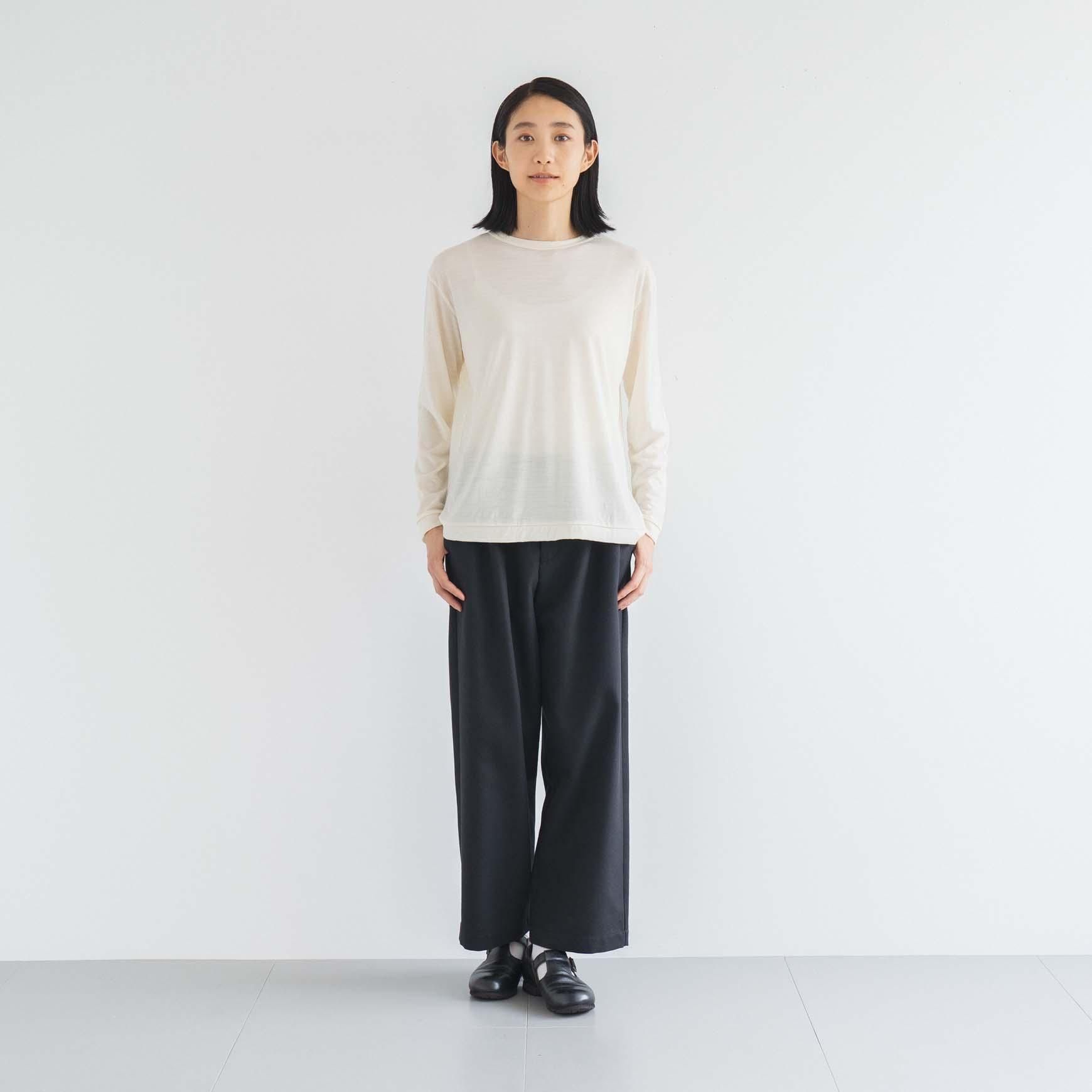 ウールなのに素肌に心地よく、1枚ではもちろんインナー使いにも、真夏をのぞいたほとんどの季節に使いやすいカットソーです。