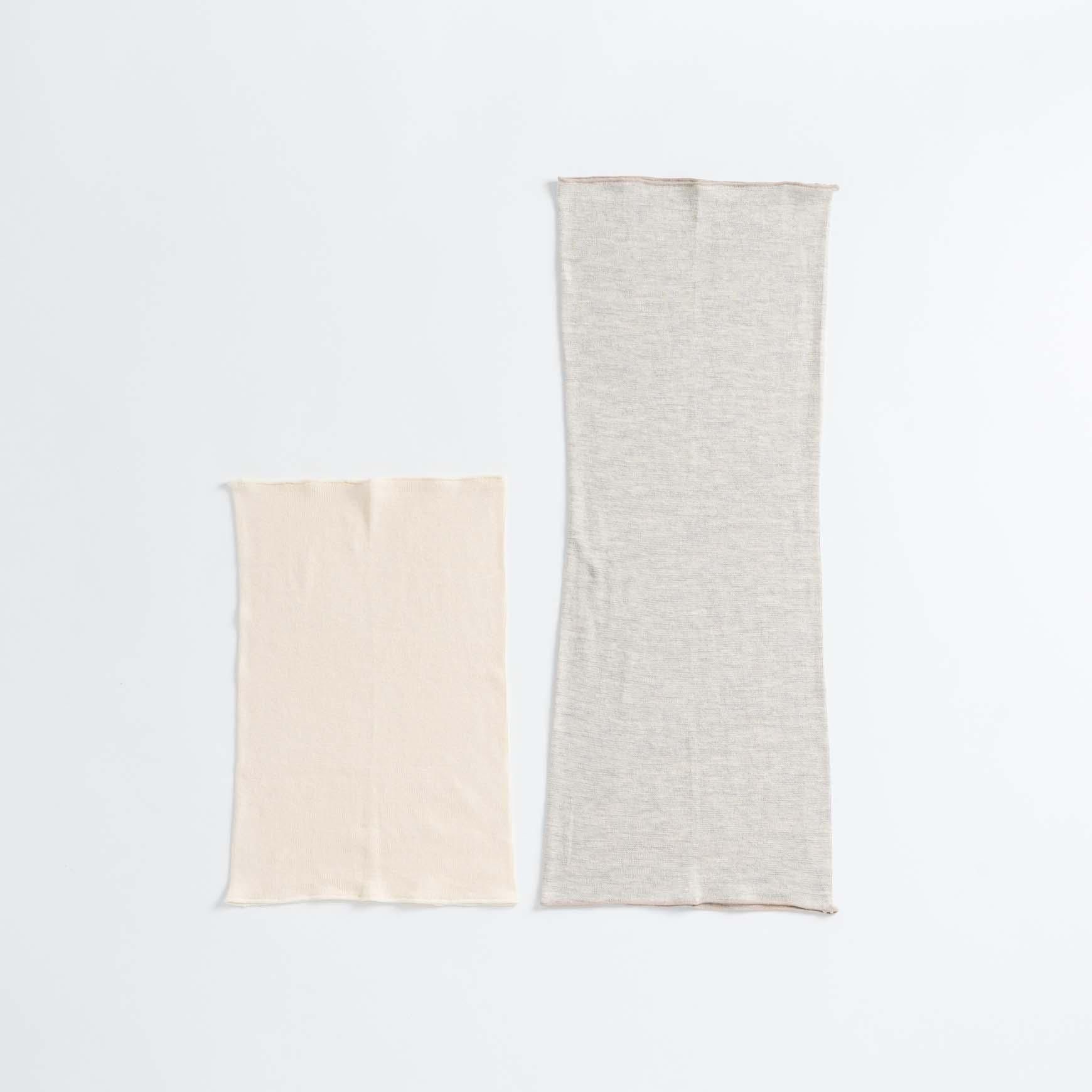 シルク糸とコットンシルク糸、2種類の糸を交互に編み込むことでできた、シルクの肌触りの良さとコットンの丈夫さを兼ね備えた一枚。