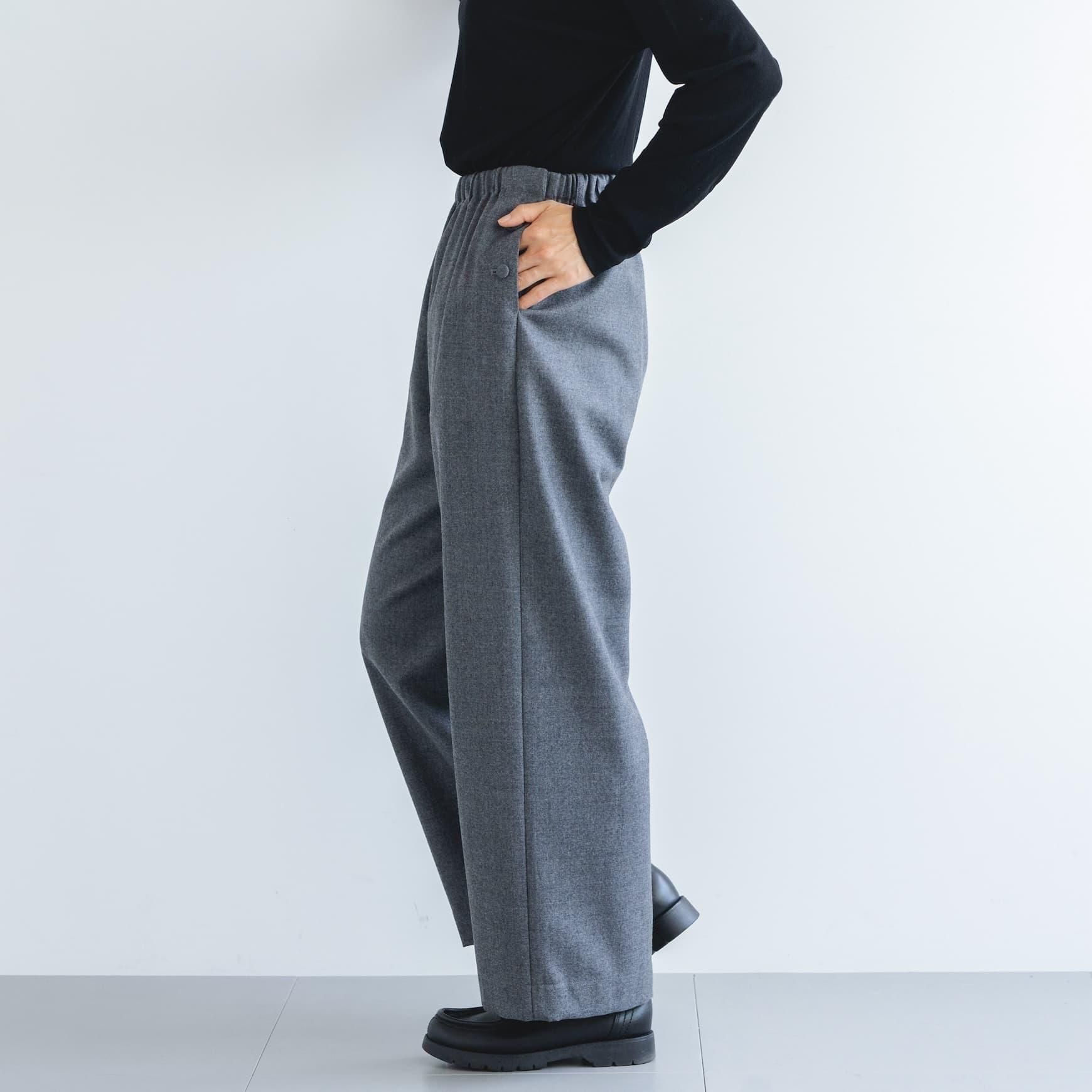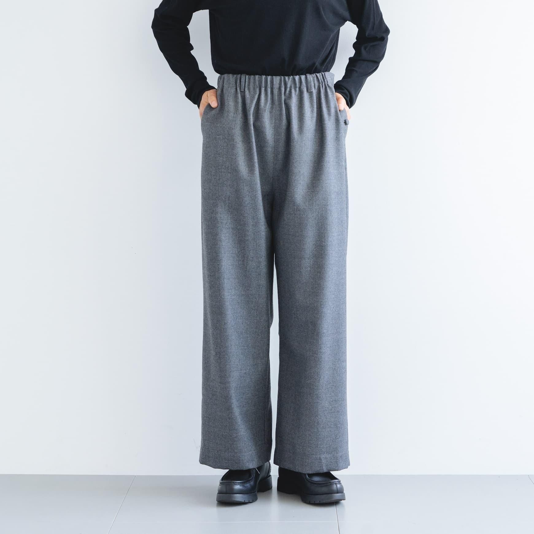 裾幅を広めにとったワイドなシルエットは、白シャツやジャケットと合わせてオフィス着としても使いやすく、上品な印象です。
