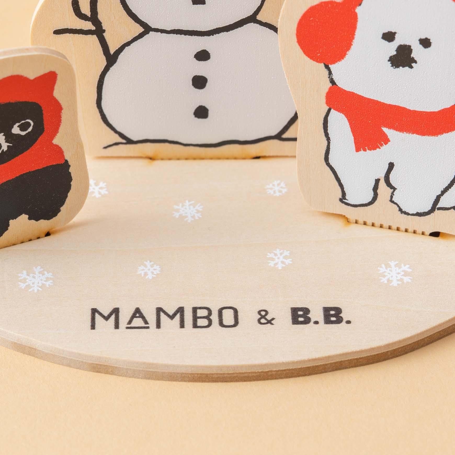 台座には、雪の結晶とともに、 MAMBO & B.B. の文字がプリントされています。