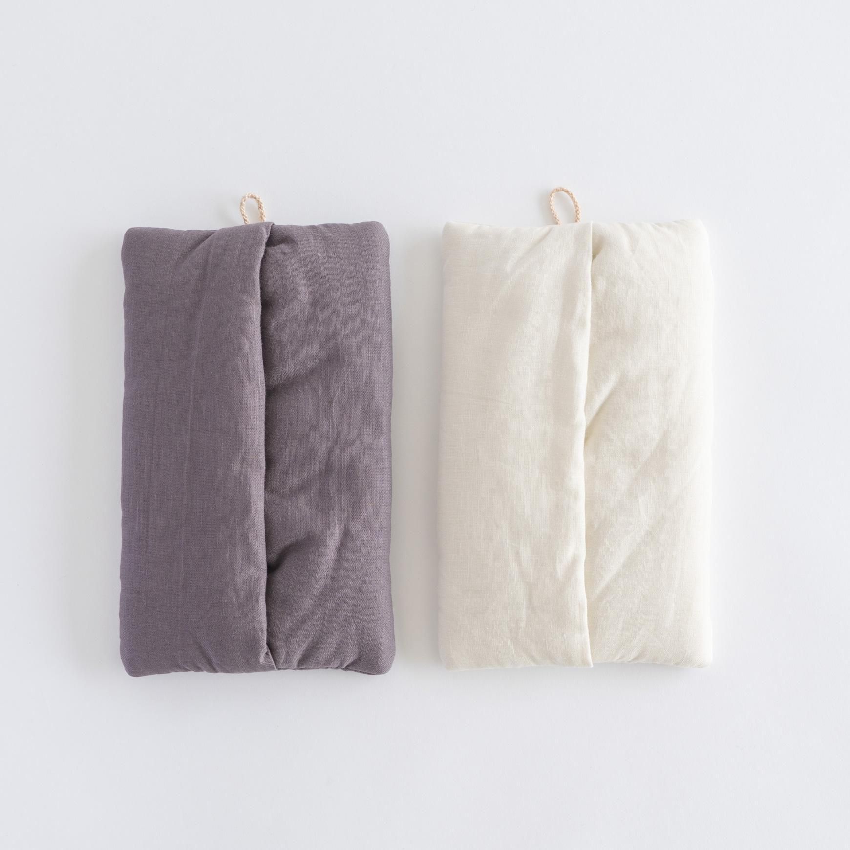 コットンリネンの、風合いあるケース。 中綿入りのふかふかとした素材でできています。